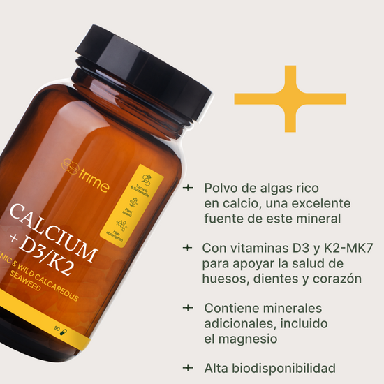 El polvo de algas rojas silvestres Lithothamnion superpositum, de calidad orgánica, es una rica fuente de calcio natural que también contiene otros minerales de forma natural. Las algas se combinan con colecalciferol (vitamina D3 natural) de algas marinas no transgénicas y vitamina K2 MK-7 de garbanzos fermentados. Juntos, Calcio + D3K2 crean un suplemento sinérgico que favorece la salud ósea, dental y cardiovascular.