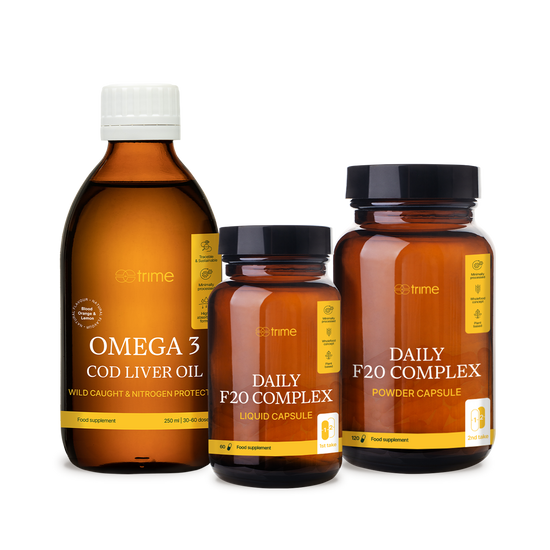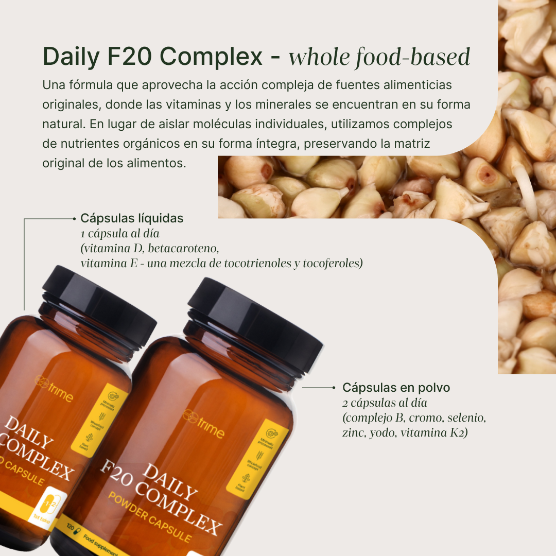 Multivitamin Daily F20 Complex y Liquid Omega 3 son suplementos esenciales formulados para compensar las deficiencias nutricionales asociadas con la dieta moderna y un estilo de vida activo. Combinan las vitaminas más deficitarias, minerales y ácidos grasos omega-3.