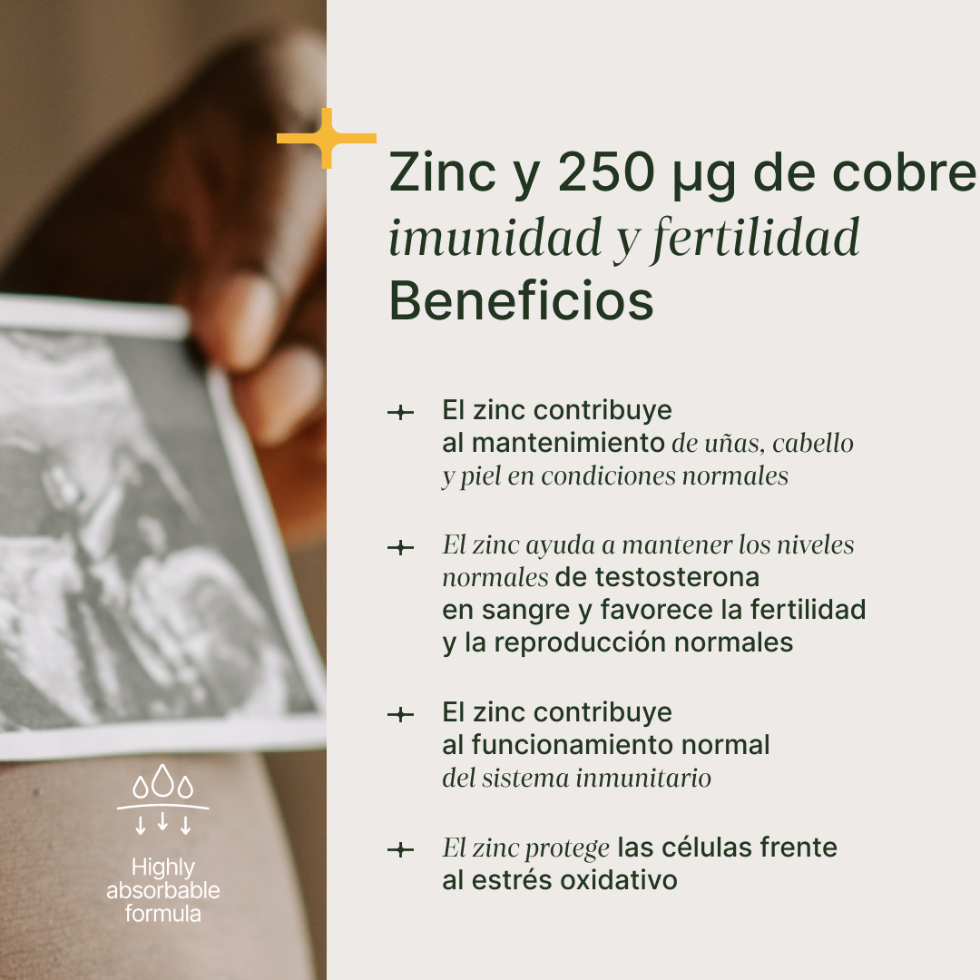 Zinc con cobre añadido para mantener el equilibrio en el organismo